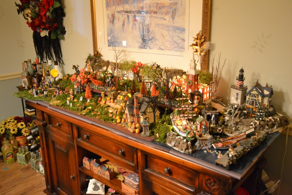 I’m the house in the neighborhood that people come to see what I’ve done inside and out each year. I decorate because I love Halloween and how festive or scary I make it depends on my mood more than anything. I love creating the villages each year, I takes lots of pictures so I don’t repeat the set-up.